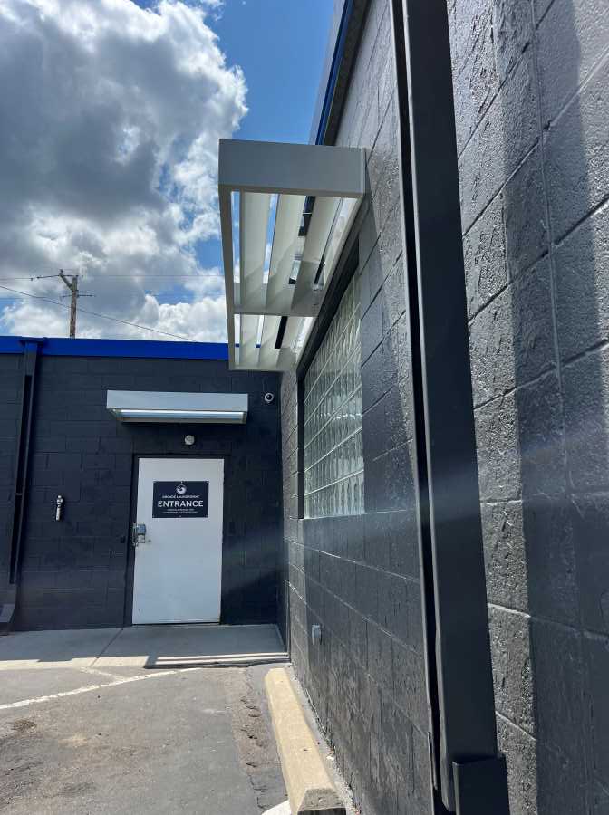 A recent project took us to Arcade Laundromat in St. Paul for an exterior renovation that included seven new commercial louvered canopies over doors and windows. The customer asked for concealed support canopies with sunshade louvers that would provide a modern and sleek look to compliment the other improvements being made. Acme Awning was pleased to be able to help.