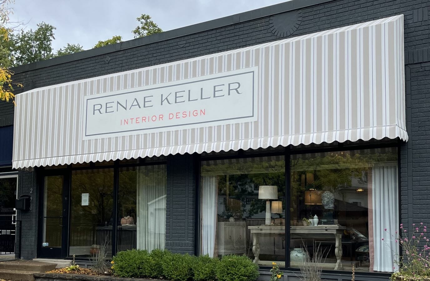 Our featured project for October is the custom awning Acme Awning recently installed for Renae Keller Interior Design (RKID). This award-winning interior design firm updated their storefront on Cedar Lake Road South in Minneapolis. Naturally, a company that focuses on interior design needs to have an exterior that reflects their style.